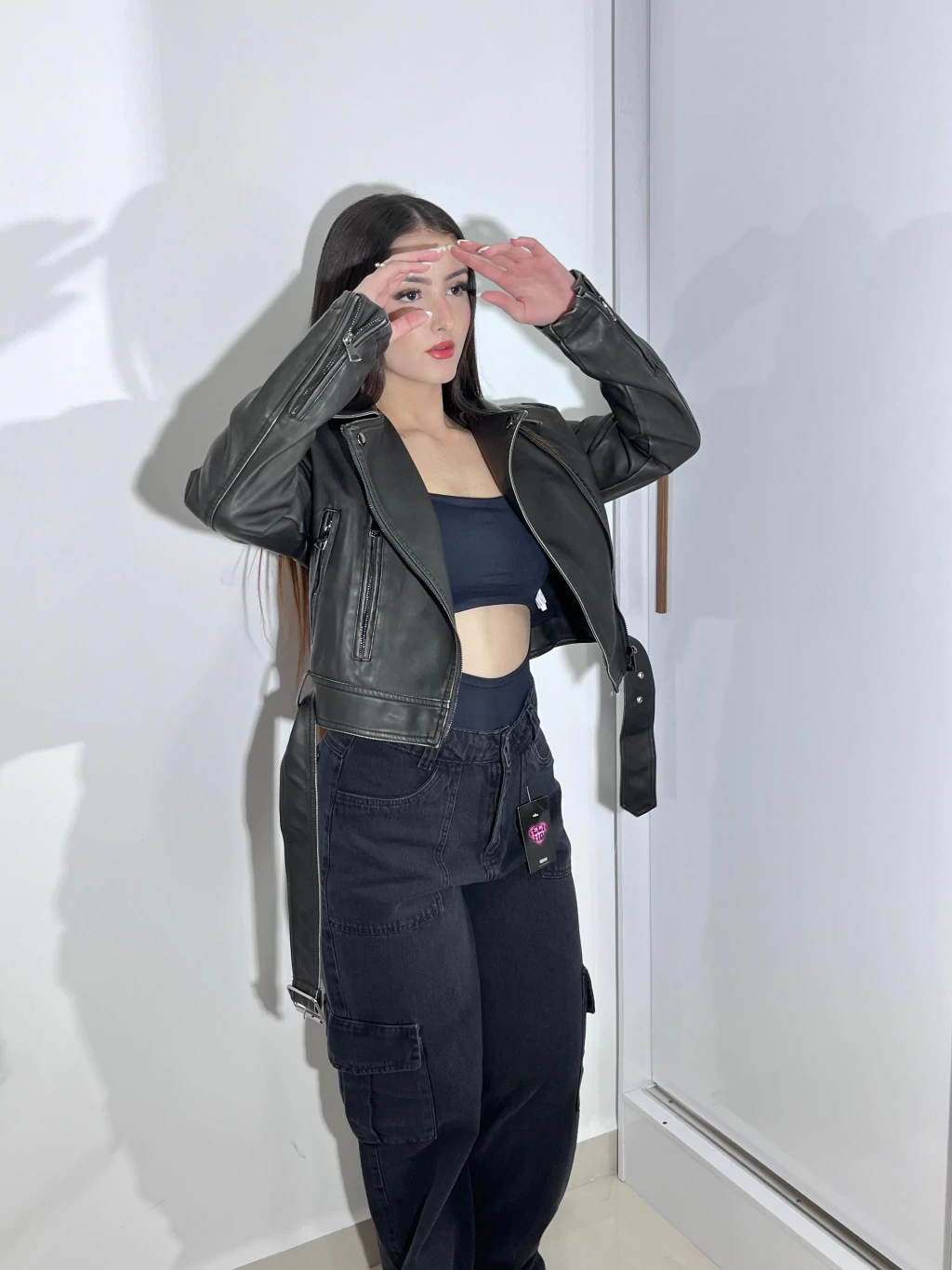 Seja o centro das atenções com a Jaqueta Savage, feita em couro ecológico na cor cinza do momento! Esta peça não é apenas uma jaqueta, é uma afirmação de estilo.