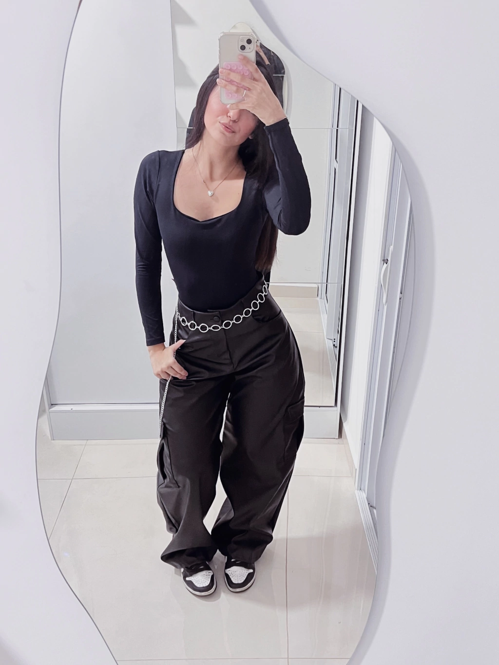 Apresentamos a Wide Leg Couro Cargô, a calça que une elegância e funcionalidade! Com um design moderno e bolso cargo super estiloso, ela é perfeita para quem busca conforto sem abrir mão da sofisticação.